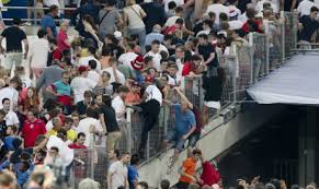 8 hours ago ... Spectators try to escape from the stands as clashes broke out right after the Euro 2016 Group B soccer match between England and Russia, ...